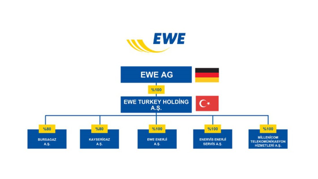 Bursagaz, Kayserigaz, EWE Enerji, Enervis ve Millenicom olmak üzere 5 iştiraki bulunan Alman şirket, Türkiye'deki varlıklarını satmak üzere yatırımcılarla yaptığı görüşmeleri hemen hemen tamamladı. EWE Grubu'na 10 firma talip oldu. Yapılan değerlendirmelerde finale 2 firma kaldı: Kolin grubu ve Azeri enerji devi Socar.