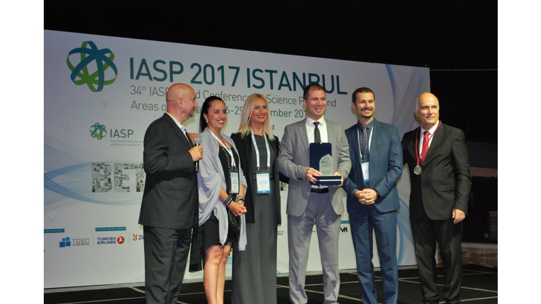 Bu yıl 34’üncüsü gerçekleştirilen IASP Dünya Konferansı’nın Gala Gecesi’nde düzenlenen törende, Bilkent CYBERPARK Genel Müdürü Faruk İnaltekin Birincilik ödülünü IASP Genel Direktörü Luis Sanz’dan aldı.