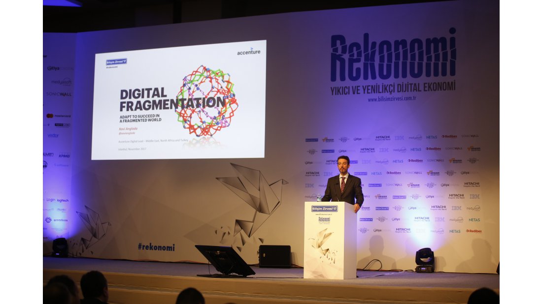 Dijital ürün, hizmet ve yetenek kombinasyonuyla var olması gereken küresel dijital iş modellerinin, dijitalleşme yolunda oluşan veri akışındaki engellerin artması ile tehlikeye girdiğini ifade eden Accenture Digital Orta Doğu ve Türkiye Ülke Lideri Xavier Anglada, “Dijital Dönüşüm Yolculuğu” konulu sunumunda “Küreselleşmenin önünde yükselen bariyerler nedeniyle BT maliyetleri artış gösteriyor, operasyonel karmaşa artıyor, ülkelere göre değişim gösteren BT standartları nedeniyle sınırlar arası operasyonel karmaşa artıyor. Şirketlerin üst düzey yöneticileri, bu bariyerler nedeniyle stratejik ve operasyonel planlarını yeniden gözden geçirmek zorunda. Dijital gelecekte küreselleşmenin önündeki bariyerleri ortadan kaldırmak için devletlerin daha açık politikalar izlemesi gerekiyor. Şirketlerin ise yeni teknolojilerin getirdiği fırsatları kucaklaması gerekiyor. Kurumların büyümeyi sürdürmeleri için büyük veri, bulut, IoT, yapay zekâ, Blockchain ve 3D baskı gibi yeni nesil teknolojilere kendilerini hazırlaması; stratejik planlamalarda bu çok kırılımlı dünyanın etkisini göz önünde bulundurarak yerel katma değere odaklanmaları kritik önem taşıyor,” dedi.
