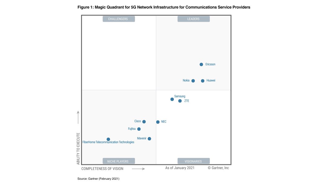 Ericsson (NASDAQ:ERIC), bilişim teknolojileri araştırma ve danışmanlık şirketi Gartner tarafından İletişim Servis Sağlayıcıları için 5G Ağ Altyapısı Magic Quadrant 2021'de lider olarak gösterildi. 2021 Şubat tarihli Gartner Magic Quadrant İletişim Servis Sağlayıcıları (CSPs) için 5G Ağ Altyapısı raporunda Ericsson'ın lider konumu, hem vizyon bütünlüğü hem de yürütme yeteneği açısından tanınıyor.