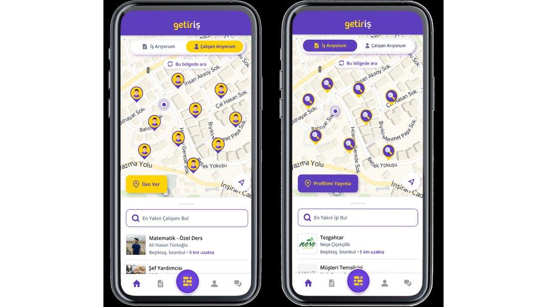 İş ve çalışan arayanları bir araya getiren Getirİş’e ilan vermek son derece kolay. Getir ana ekranından Getirİş’i seçen kullanıcılar iş ya da çalışan arama durumuna göre seçimini yaparak harita üzerinden ve listede yakın çevrelerindeki iş ve çalışan ilanlarını görebiliyor.