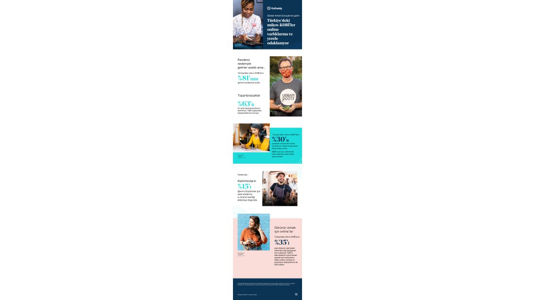GoDaddy Türkiye, MENA ve Güney Afrika Kıdemli Bölge Direktörü Selina Bieber konuyla ilgili olarak şunları söyledi: “GoDaddy 2020 Global Girişimcilik Anketi pandeminin çok küçük işletmeler üzerindeki global etkilerini göz önüne koydu ancak dünyanın dört bir yanındaki savunma mekanizmalarının benzerlik gösterdiğini görmek de ilginç. Türkiye’deki çok küçük işletmelerin yüzde 40’ı en azından geçici bir süre dükkânlarını kapatmak durumunda kaldı; bu oran globalde de aynı seviyede. Online olan tüketicilerin sayısının artmasına paralel olarak, küçük işletmeler online varlıklarını oluşturmanın işletmelerinin aktif kalmasını ve müşterileriyle etkileşim kurmasını nasıl sağlayacağıyla daha çok ilgileniyor.”