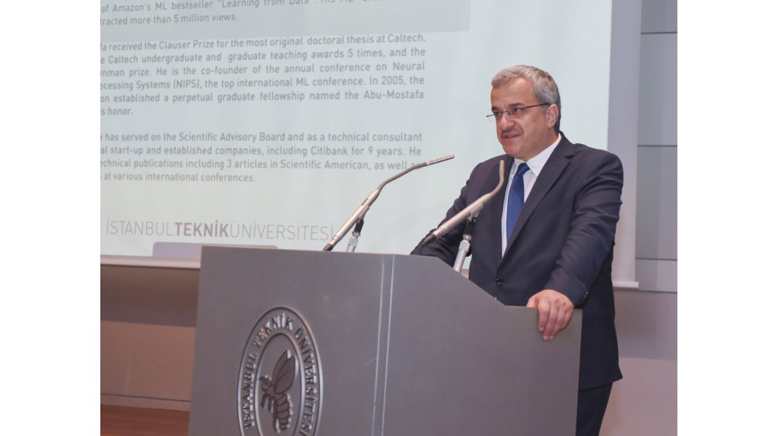 İTÜ Rektörü Prof. Dr. Mehmet Karaca, Prof. Dr. Yaser S. Abu-Mostafa’nın çalışmalarının bilim dünyası için ufuk açıcı olduğunu belirtti. İTÜ’de kendisini ağırlamaktan duyduğu memnuniyeti dile getiren Karaca, " Prof. Dr. Yaser S. Abu-Mostafa, makine öğrenimi konusunda yaptığı araştırma ve eğitim faaliyetleriyle yapay zekanın farklı pencerelerden değerlendirilmesinin kapısını açtı. Çevrim içi olarak makine öğrenimi derslerini araştırmacılara sundu be çok yüksek izlenme rakamlarına ulaşarak bu alandaki herkese ulaştı. 'Veriden Öğrenme' kitabı Amazon’da en çok satanlar listesinde yer aldı. Abu-Mostafa gibi çığır açıcı bir bilim insanını İTÜ çatısı altında ağırlamaktan gurur duyuyorum" dedi. Karaca,” Çağımızda veriye sahip olan ve analiz eden başarılı olur. Netflix’i duymayan, bilmeyen yoktur sanırım. Öyle bir model geliştirdi ki sattığı dizilerin kazançlarından daha fazla kâr eden bir platform haline geldi. Netflix gibi firmalar varsa teknoloji sayesinde var. Disney’in yıllık kârı 150 milyar dolar ama Netflix’in kazancı 165 milyar dolar. Veriyi elinde tutmayı, kullanmayı, pazarlamayı, dağıtmayı biliyor.”diyerek yapay zekâ ve makine öğrenmesinin bugün ve yakın gelecekti önemini çarpıcı örneklerle vurguladı.