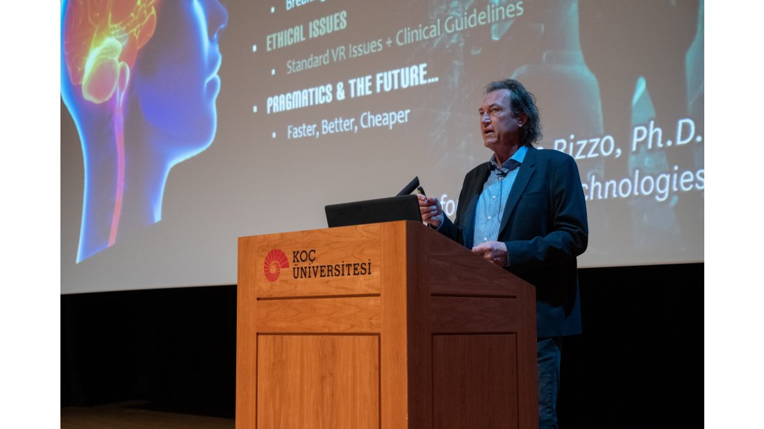 Koç Üniversitesi Rektörü Prof. Dr. Umran İnan’ın ev sahipliğindeki törene, rehabilitasyon ve psikolojik dayanıklılık alanlarında kullanılan sanal gerçeklik sistemlerinin tasarımı, geliştirilmesi ve değerlendirilmesi konularında araştırmalar yapan dünyanın önde gelen uzmanlarından Güney Kaliforniya Üniversitesi, Yaratıcı Teknolojiler Enstitüsü Merkezi Medikal Sanal Gerçeklik Bölüm Direktörü, Psikolog Albert Skip Rizzo ile Güney Kaliforniya Üniversitesi, Yaratıcı Teknolojiler Enstitüsü Araştırma ve Geliştirme Entegrasyonu Yöneticisi, Arno Hartholt da katıldı.