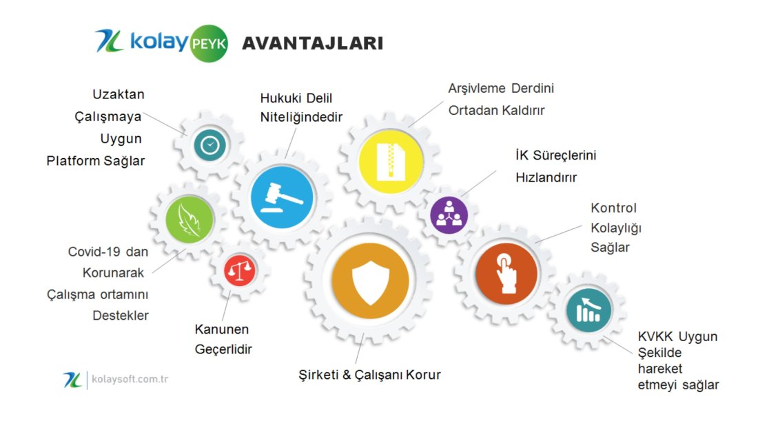 İş kanunları kapsamındaki kayıt ve belgeleri resmi evrak olarak dijitalleştiren KolayPeyk, işletmelerin işlerini kolaylaştırmaya ve değer katmaya katmaya devam ediyor. KolayPeyk platformu sayesinde, işletmeler yasal dayanaklara uygun bir şekilde tebliğ ve tebellüğlerini personellerine yapıyor. Çalışanlar da, firmasından kendilerine gönderilecek olan tüm bildirimleri, rahatça evlerinden cep telefonlarıyla “zaman damgalı” olarak onaylıyor ve istedikleri dönemlerde de bordro gibi tüm bildirimlerini arşivden yeniden görüntüleyerek, ulaşabiliyorlar. Kolaysoft Teknoloji AŞ firmasının KolayPeyk ürünü ile, içinde bulunduğumuz salgın günlerinde de, personele yapılacak duyuru, yazışma, bildirimler ve bu bildirimlere cevap alınması gibi konularda yaşanabilecek olası sorunların da önüne geçilmiş olunuyor.