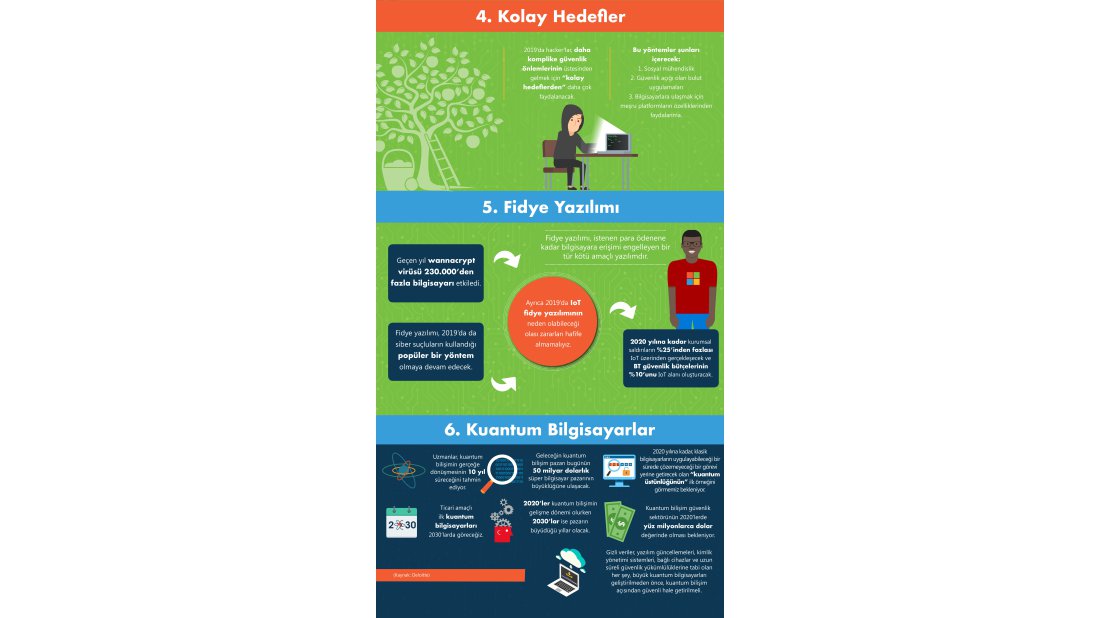 Geçtiğimiz yıl wannacrypt virüsünün 230.000'den fazla bilgisayara bulaşması hala etkisini koruyor. Buna benzer fidye yazılımları, 2019 yılında da siber suçlular tarafından kullanılan popüler yöntemler olmaya devam edecek. 2020 yılına kadar kurumsal saldırıların %25'inden fazlasının IoT üzerinden gerçekleşmesi ve IT güvenlik bütçelerinin %10’unun IoT’ye ayrılması bekleniyor.