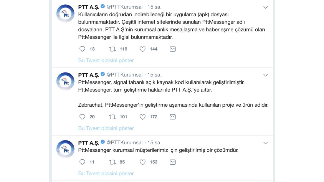 PTT A.Ş. tarafından resmi Facebook ve Twitter hesapları üzerinden yapılan açıklamda Ptt Messenger’ın kurumsal müşteriler için geliştirilmiş bir çözüm olduğunun altı çizildi.