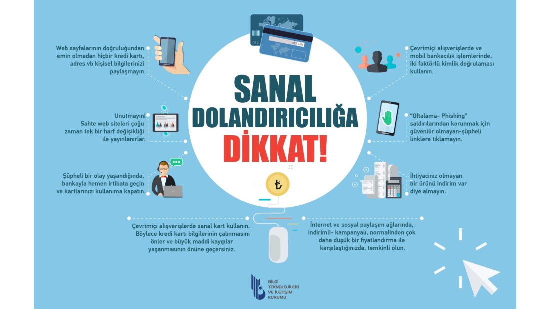 İnternetten alışverişin yoğun bir şekilde gerçekleştiği bu günlerde, tıklama dolandırıcılığından, internet bankacılığı dolandırıcılığına, aslını taklit eden sahte web sitesi dolandırıcılığından sahte linklere kadar pek çok yöntemin kullanıcıları dolandırmak amacıyla kullanıldığını hatırlatan Sayan, “Doğru bilgi, yeterli dikkat ve bilinçli internet kullanma alışkanlıkları ile bu tür olumsuz olayların önüne geçmek mümkün” diye konuştu ve vatandaşlara şu tavsiyelerde bulundu: