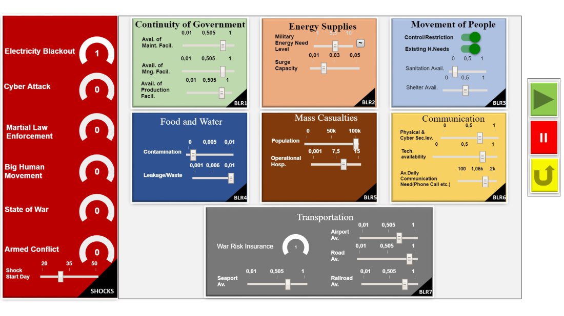 Karar Destek Modeli; büyük göç hareketleri, çatışma ortamının oluşması, büyük çaplı elektrik kesintileri ve doğal afetler gibi NATO tarafından belirlenen şok türlerinin gerçekleşmesi halinde; hangi alanların ve altyapıların ne seviyede etkileneceğine ilişkin bir analiz sunuyor. Böyle bir durumun sosyal ve politik alanlar dahil olmak üzere tüm stratejik etkileri, sivil ve askeri sistem unsurlarında yaratacağı olası sonuçları ve performans değişimlerini göstererek karar vericilere kaynak ve yatırımların nasıl yönlendirileceğine dair önemli bir destek sağlıyor. Yaşanan durum karşısında nasıl bir iyileşme sürecinin takip edilmesi gerektiği konusunu da işleyen model, yetkili makamların uygulayacakları eylemler ve önlemler adına karar alma süreçlerini kolaylaştırıyor.