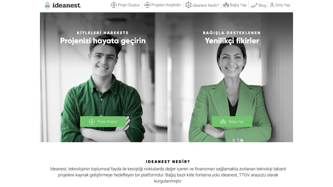 Bağış bazlı kitle fonlama platformlarından biri olan ideanest, şu an için 8 projeyi sistemine eklemiş durumda. Diatech – Kansız şeker ölçüm cihazı, Koruncuk Vakfı – Maker Atölyesi, Robotel Derneği için 3D yazıcı, Kanseri Beraber Yenelim Projesi, Hemşirelikte İnovasyon Akademisi, Teknoloji kiti Destek Kampanyası, BLIS-IMPACT for STMEAM ve Yapay Zeka Çalışmaları ideanest’te fonlama aşamasına geçen projeler.