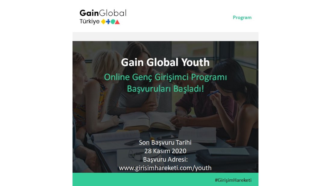 Gain Global girişimcilik alanına ilgi duyan üniversite öğrencileri için genç girişimci programı hazırladı. Çeşitli eğitimler ve mentörlükler eşliğinde öğrencilere girişim fikirlerini geliştirme fırsatı sunan "Gain Global Youth" programının başvuruları global girişimcilik haftasında başladı.