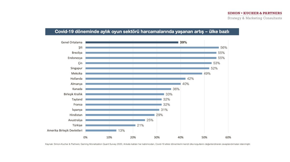 Covid-19, dünya çapında video oyunları için yapılan aylık harcamalarda yüzde 39 artışa sebep oldu ve bu artışın, tüm pandemi kısıtlamaları kaldırıldıktan sonra bile yüzde 21 gibi yüksek seviyelerde kalacağı tahmin ediliyor. Oldukça yüksek olan aylık harcamanın bir sonucu olarak, küresel oyun pazarının, tahminleri yüzde 50 aşarak önceki yıla göre yüzde 12-15 oranında büyümesi bekleniyor.