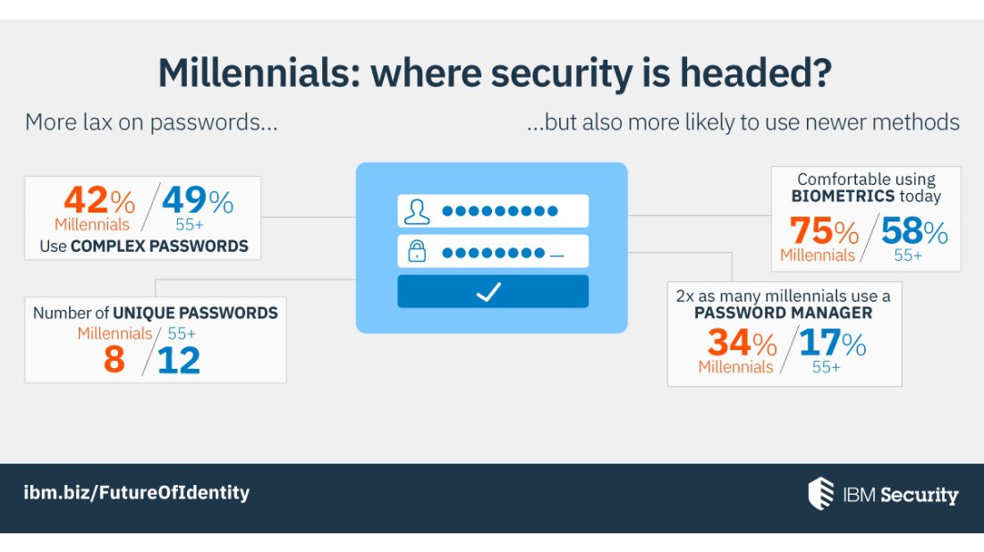Veriler, daha genç nesillerin geleneksel parola güvenliğine daha az dikkat ettiğini gösteriyor, bu da parolalar sayesinde y kuşağı kullanıcılarının verilere erişimini yöneten işletmeler ve işverenler için bir engel teşkil ediyor. Y kuşağı ve Z kuşağı çalışan yüzdesi işgücünde artmaya devam ettikçe kuruluşlar ve işletmeler parolalar yerine biyometrik yöntemlerini ve simgelerini alan yaklaşımları bütünleştirerek ve birincil kimlik doğrulama unsuru olarak daha çok mobil cihaz kullanımına izin vererek daha genç nesillerin yeni teknolojiye eğilimlerine uyum sağlayabilir.