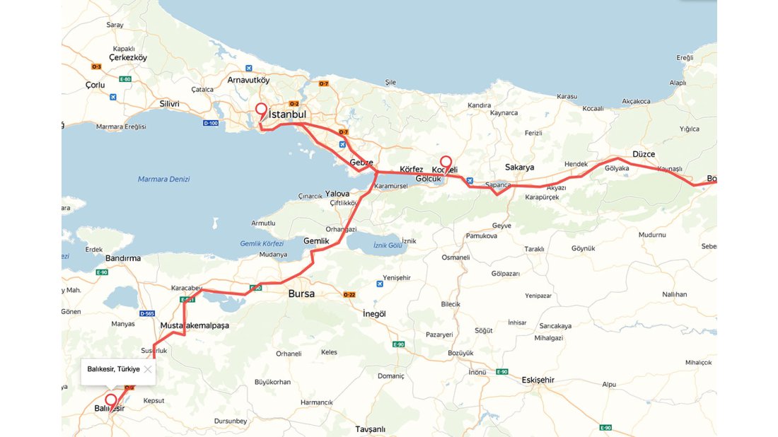 Çanakkale – Ayvalık – İzmir güzergâhında trafik süresi ise 270 dakika