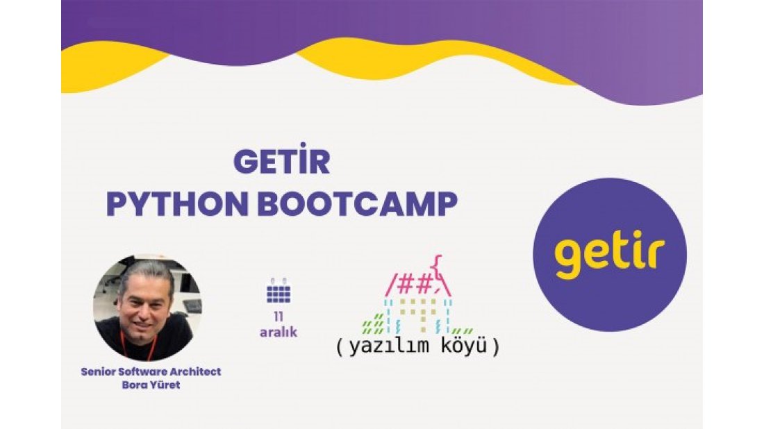 Yazılımkoyu.org. Getir’le beraber ücretsiz olarak 65 saat sürecek olan Python BootCamp’i hazırladı. Katılımcılar BootCamp sonunda gösterdiği başarıya göre Getir’de çalışma elde edecekler. Eğitimler Bora Yüret tarafından verilecek.