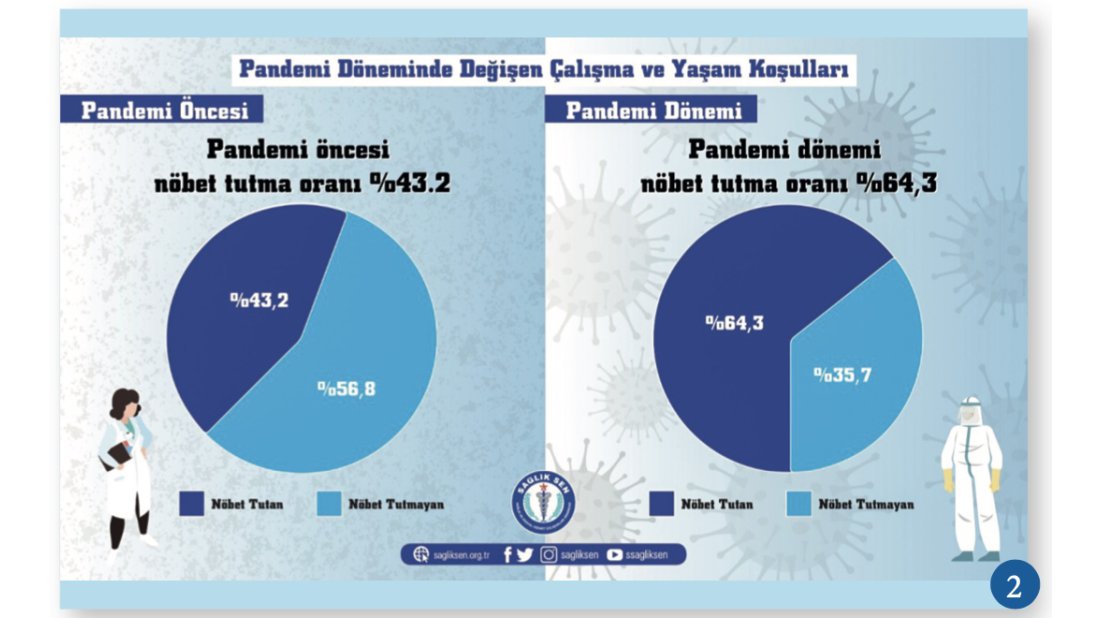 Pandemi öncesi nöbet tutma oranı %43,2 iken pandemi sürecinde bu oran %64,3 olmuştur. (2)