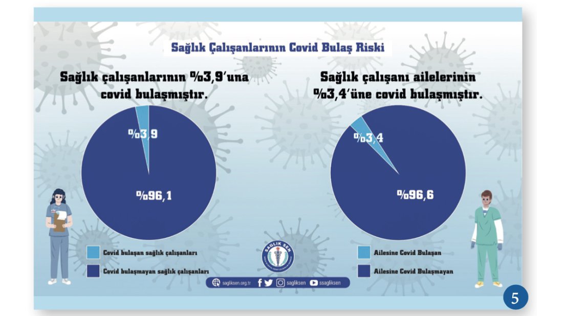 Bu oran dünyada sağlık çalışanlarına bulaş oranı olan %10’dan düşük olmakla birlikte Türkiye genelindeki bulaş oranı olan binde 2,9’dan ise oldukça yüksektir. (*Araştırmanın yapıldığı tarihteki oran baz alınmıştır.)