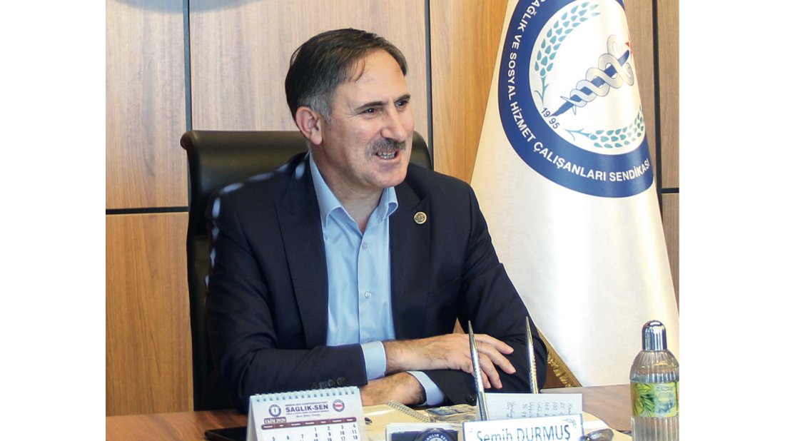 Semih DURMUŞ: Sendika ve yönetimi olarak sağlık çalışanlarının hak ve hukuklarını korumak bizim asli vazifemiz. Sendika yönetimi olarak öncelikle sorunları tespit ediyor ve çözüm önerilerini ortaya koyuyoruz. Biz sorunların çatışma ile değil diyalog yoluyla çözüleceğine inanıyoruz. Birçok sorunumuzda bu yöntemle çözüldü. Zaman zaman bürokratik sıkıntılar yaşamıyoruz diyemem ama bu bizim için bir engel değil. Belirlediğimiz hedef doğrultusunda ve ilkelerimizden taviz vermeden sorunları çözmekteyiz ve çöz- meye devam edeceğiz.